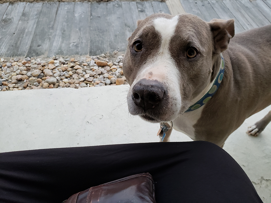 We will look out and remember seeing you chasing a squirrel up the fence. Your sweet soul brought sunshine to our days and joy to our hearts.